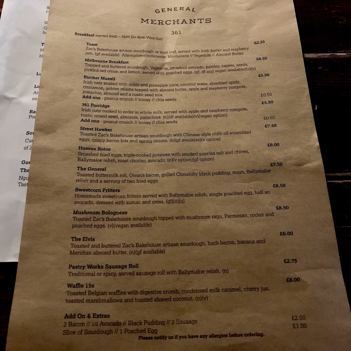 Welcome to General Merchants, a vibrant breakfast haven located at 361 Ormeau Rd, Belfast. This gem has garnered rave reviews for its eclectic menu, featuring everything from Huevos Rotos to Sweetcorn Fritters, ensuring a delightful culinary adventure at any time of day. Guests rave about the Melbourne Breakfast and the hearty Porridge, perfect for starting the day on a high note.